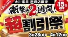 2026.4.12まで所沢店【店内ほぼ全品対象 最大15%OFF】超割引祭