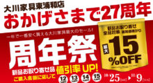 - 2025.10.25スタート東浦和店【大川家具最大のセール】27th周年祭
