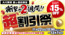 2025.12.7まで鶴ヶ島店店内ほぼ全品対象【最大15%OFF】超割引祭