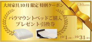 2025年09月30日 coupon2510p « パラマウントベッドにも使える大川家具限定「最大12%OFF」クーポン 最新の記事 2025.11.08籐の修理事例24 (キャビネット、シェルフ、テーブル他)[2025.9 M様] 2025.11.06家具移動実例 [53]ガラス戸の付いた本棚を階段で1階から2階へ移動(吊り作業あり) 2025.11.06家具移動実例 [52]ガラス戸の付いた本棚を階段で3階から1階へ移動(解体組立作業あり) 2025.11.06家具移動実例 [51]弊社ご購入のダイニングセット一式(解体組立作業あり)を階段で2階から1階へ移動 2025.11.06家具移動実例 [50]ワードローブ(解体組立作業あり)と 引き出しタンスの同階別部屋移動