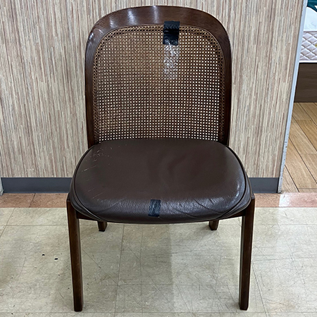 の背もたれ(籐)と座面(本革)の張替修理のご依頼です。