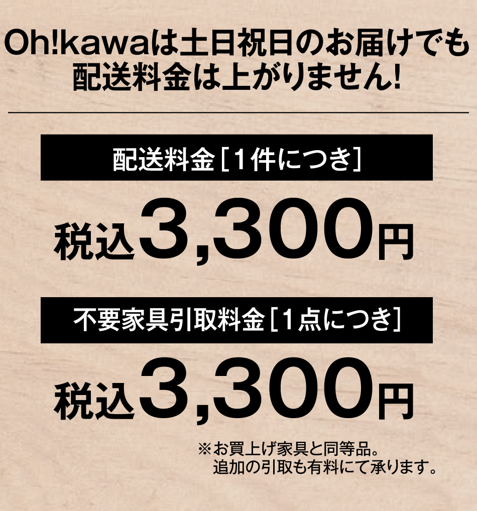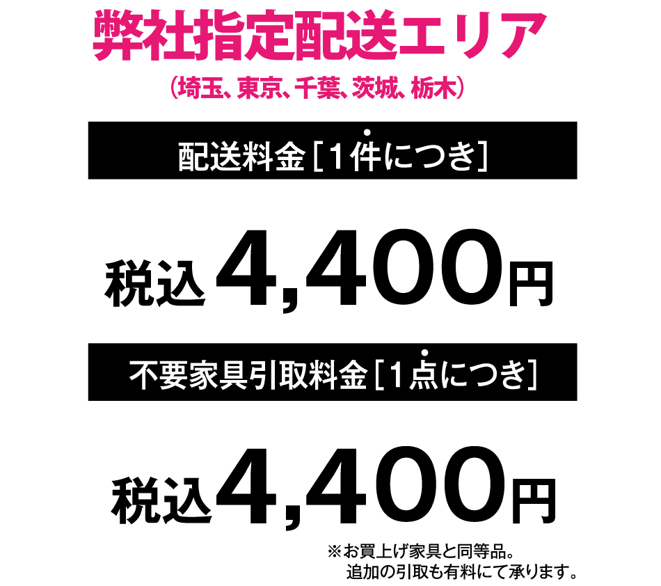 ※弊社配送エリア内につきましては家具のお買上げ点数が増えても配送料金は上がりません。現在、弊社の配送地域は以下の通りです。区域外へも配送いたします。料金は別途お見積りとなります。